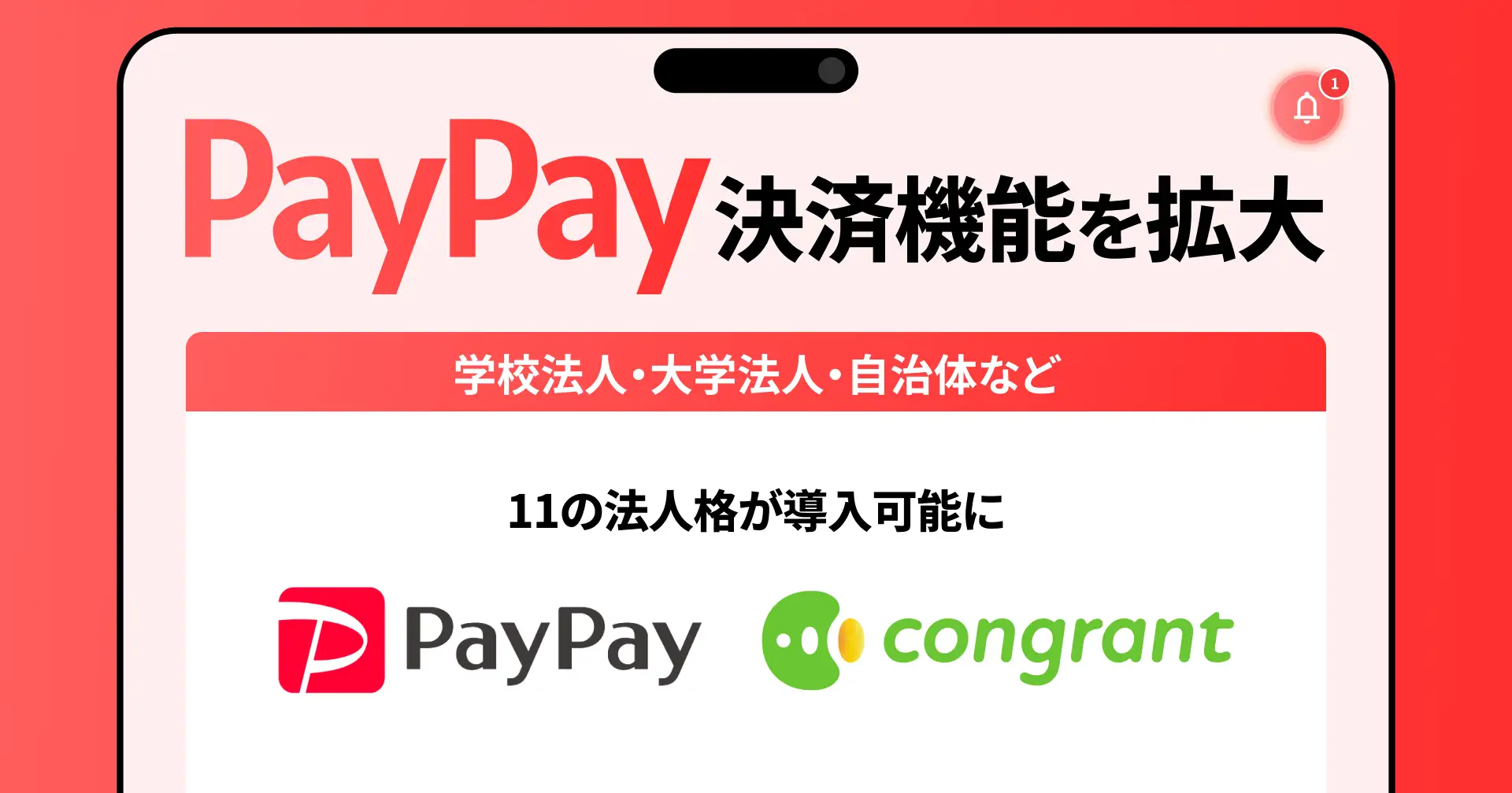 - コングラント、PayPay決済機能を拡大 学校法人・大学法人などの法人格が導入可能に