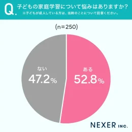 子どもの家庭学習、2人に1人以上の保護者が「悩みアリ」=NEXERと家庭教師のファミリー調べ=