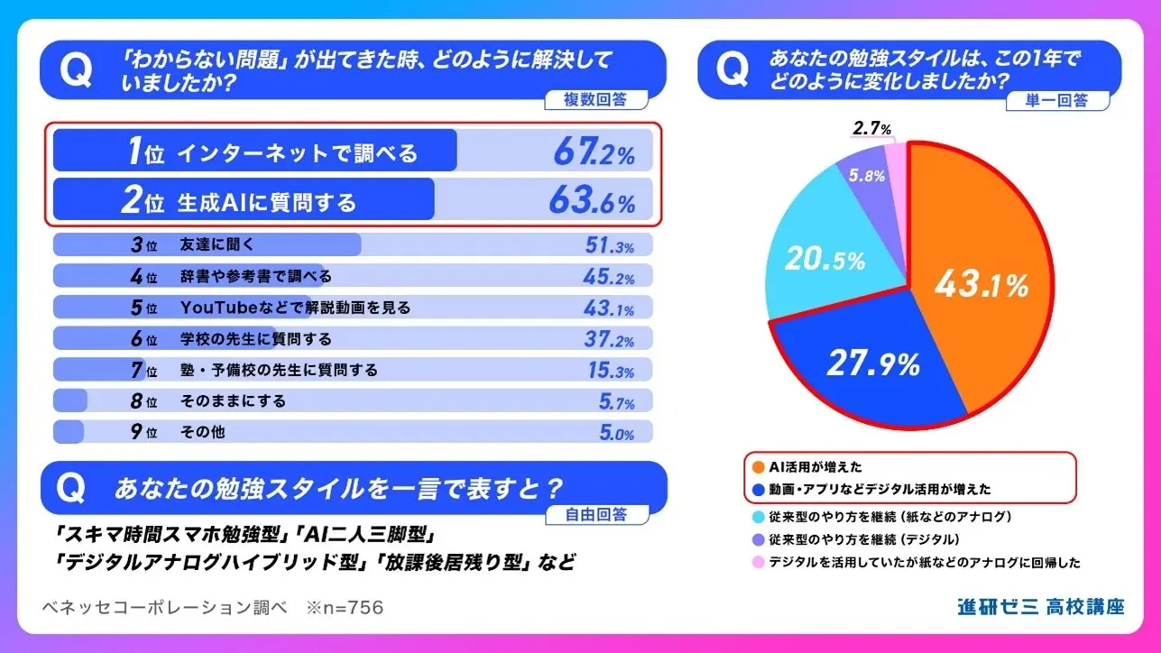 ベネッセコーポレーションが提供する通信教育講座「進研ゼミ高校講座」は9日、「高校生の意識・まなび調査2025」の結果を公表した。