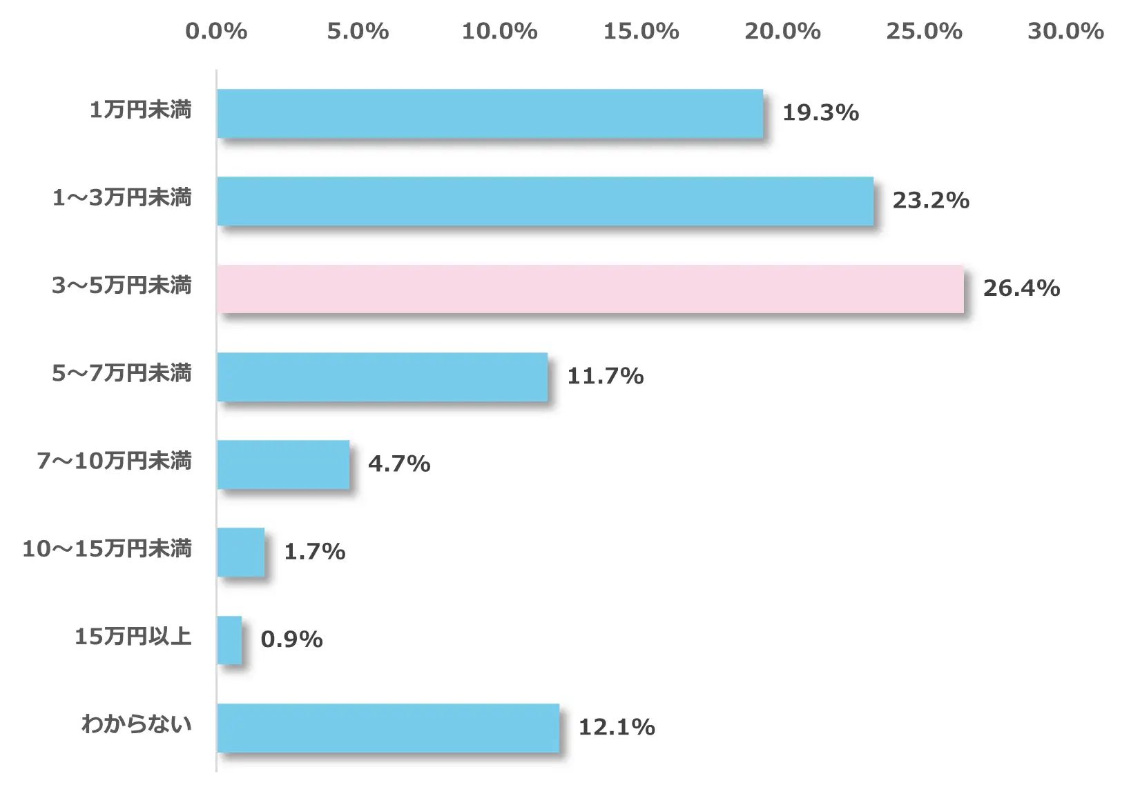 子どもの受験サポートにかけている月平均費用を尋ねたところ、最も多かったのは「3万円以上5万円未満」26.4%だった。また、「3万円以上」と回答した家庭は全体の45.4%となり、ほぼ半数に迫る水準であることが分かった。物価高騰が続くなか、保護者のあいだでは 「どのように効果的に学びを支えるか」 といった費用意識が高まっている様子が伺える。