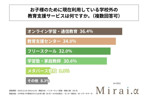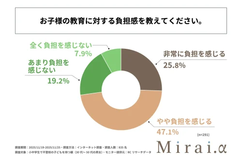 - 不登校、学校外の教育支援サービスを利用している親の4割以上が期待ほどの効果を感じていない=Mirai.y調べ=(2025年12月11日)
