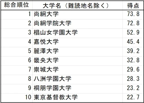 嘉悦大学は11日、「漢字の読みが難しい大学(“難漢”大)調査」の結果を公表した。
