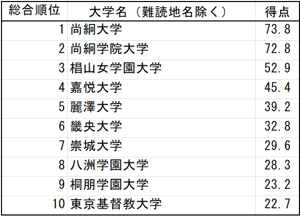 嘉悦大学は11日、「漢字の読みが難しい大学(“難漢”大)調査」の結果を公表した。