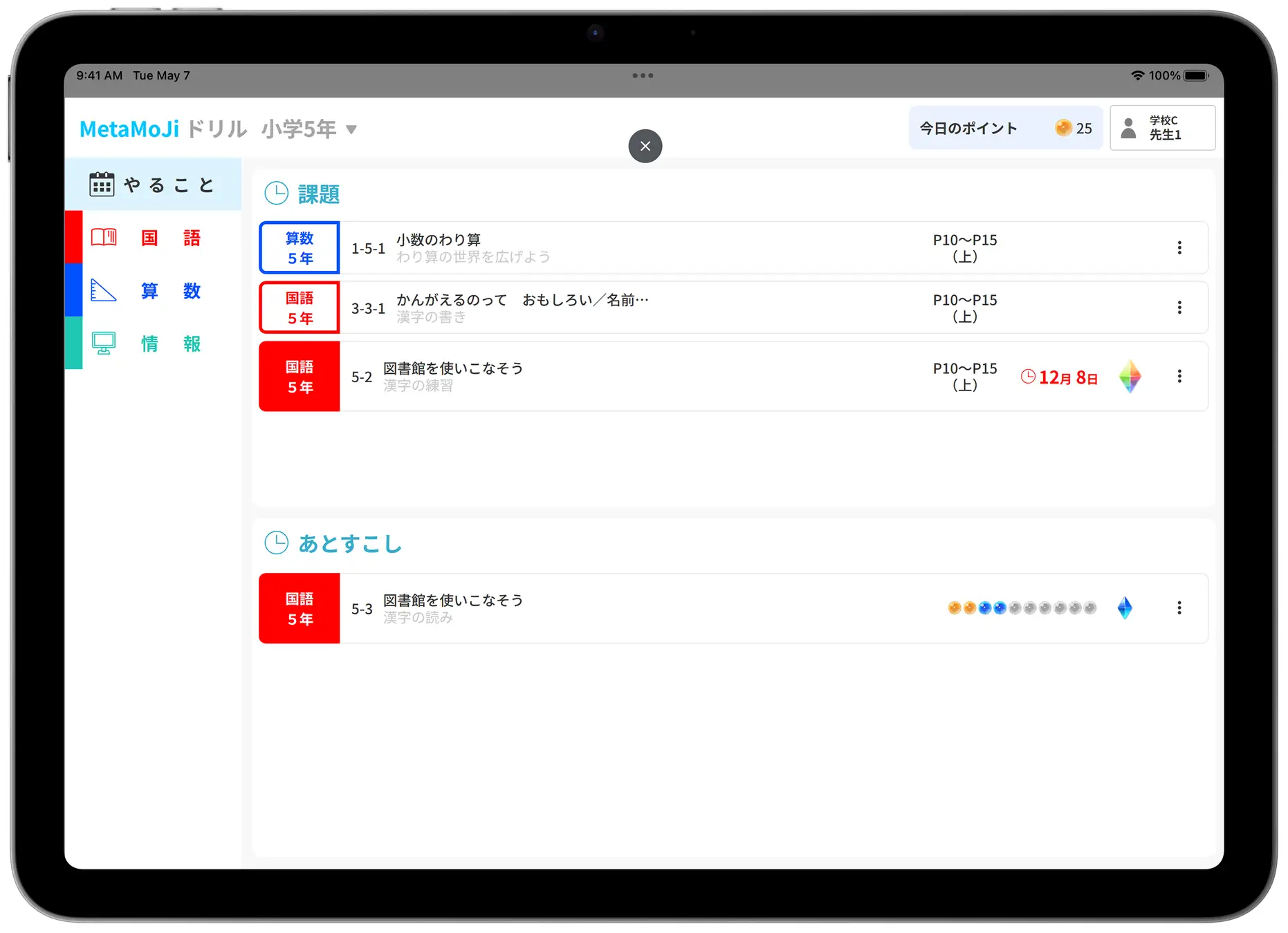・機能:共通ログイン/先生が課題指定/児童が問題選択/自動採点・履歴表示/ノートから出題リンク/総ルビ表示を個別指定/有償版の機能の一部を順次追加