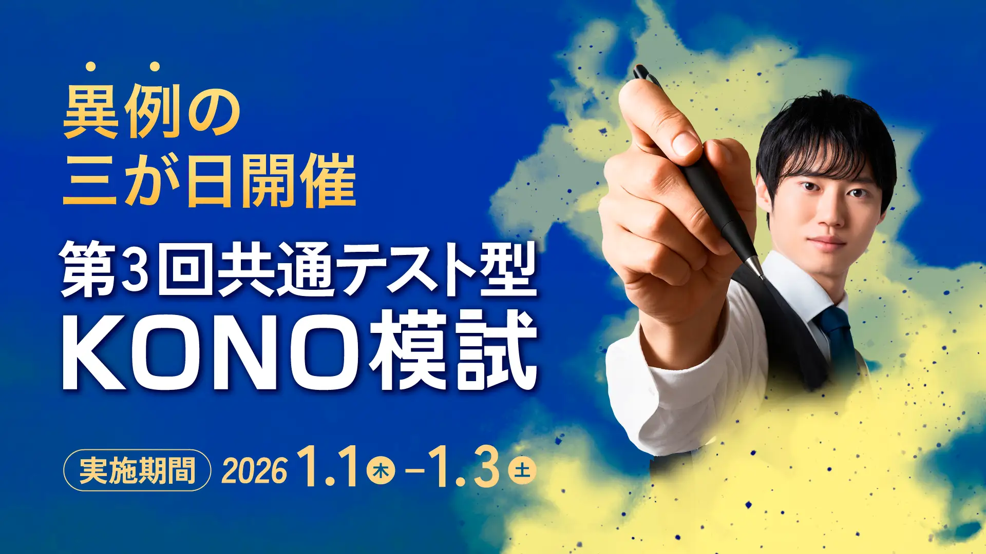 Stardyが運営するオンライン予備校「河野塾」は、2026年1月1日〜3日の三が日に、オンライン模試「第3回共通テスト型KONO模試」を無料で実施する。