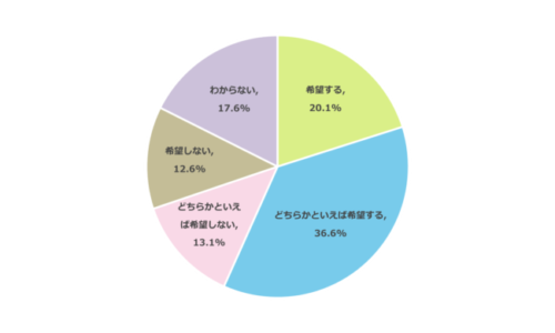 公立高校を志望する中学3年生の保護者732名に、デジタル併願制の導入について調査したところ、56.7%が「希望する」(希望する:20.1%、どちらかといえば希望する:36.6%)と回答した。