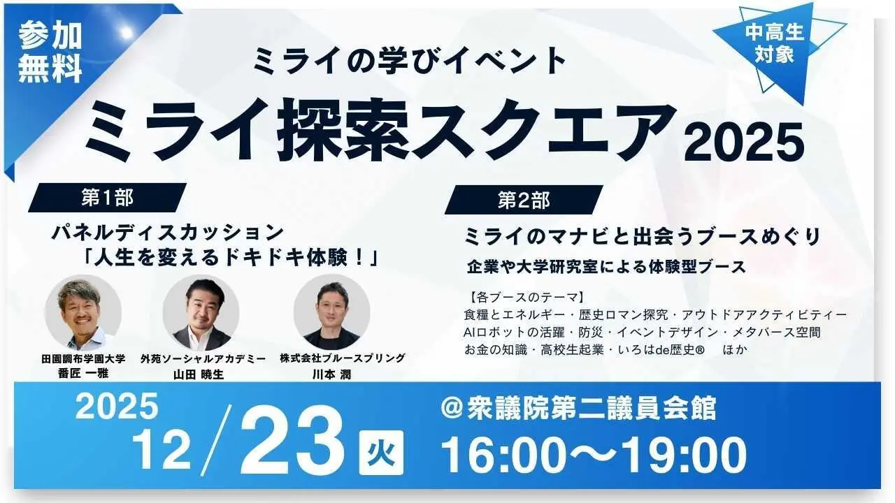 3. みんがく、中高生・親子・教育関係者向けに衆議院第二議員会館で「ミライ探索スクエア2025」23日開催