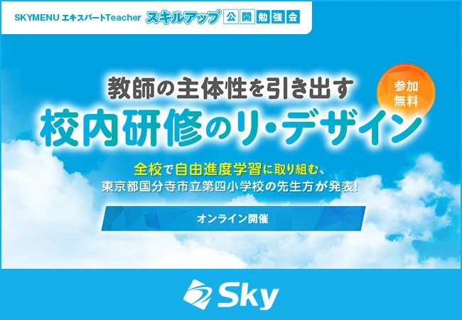 Skyは、学校の教員・教育委員会関係者などを対象に、「教師の主体性を引き出す校内研修のリ・デザイン」と題する勉強会を、2026年1月10日にオンラインで無料開催する。