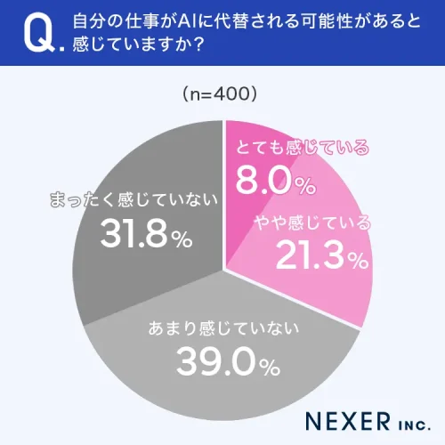 「仕事とAI」、約3割が「自分の仕事が代替される可能性がある」と実感= NEXER 調べ=