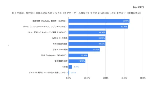 一方で、「学習と関係のない動画を見る」「学習と関係のないゲームやアプリで遊ぶ」という回答も一定数見られた。