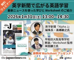 一方、31日開催のウェビナー「英字新聞で広がる英語学習」では、前半で、学習者向け英字新聞「The Japan Times Alpha J」編集長の高橋敏之氏が、中高生に向けた英文の工夫や記事テーマの選定ポイントを解説。編集の視点から、記事が授業の中でどう活きるかを伝える。