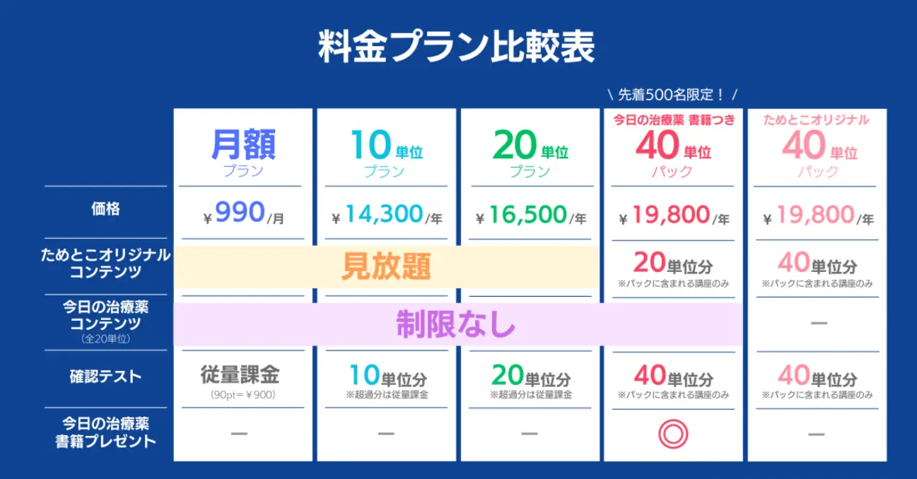 今回のコラボ開始にあわせて、新たに「今日の治療薬 書籍つき 40単位パック」を提供。初めて研修認定薬剤師を目指す層を主な対象とし、先着500名には「今日の治療薬」書籍が付属する。すでに書籍やWEB版を利用している薬剤師向けには、10単位・20単位プランも用意されており、更新ニーズにも対応する。