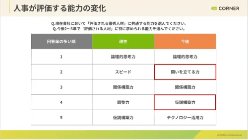 これはAI活用が進む社会において、人に求められる役割が「作業の実行」から「思考や判断の設計」へと移行していることを示している。