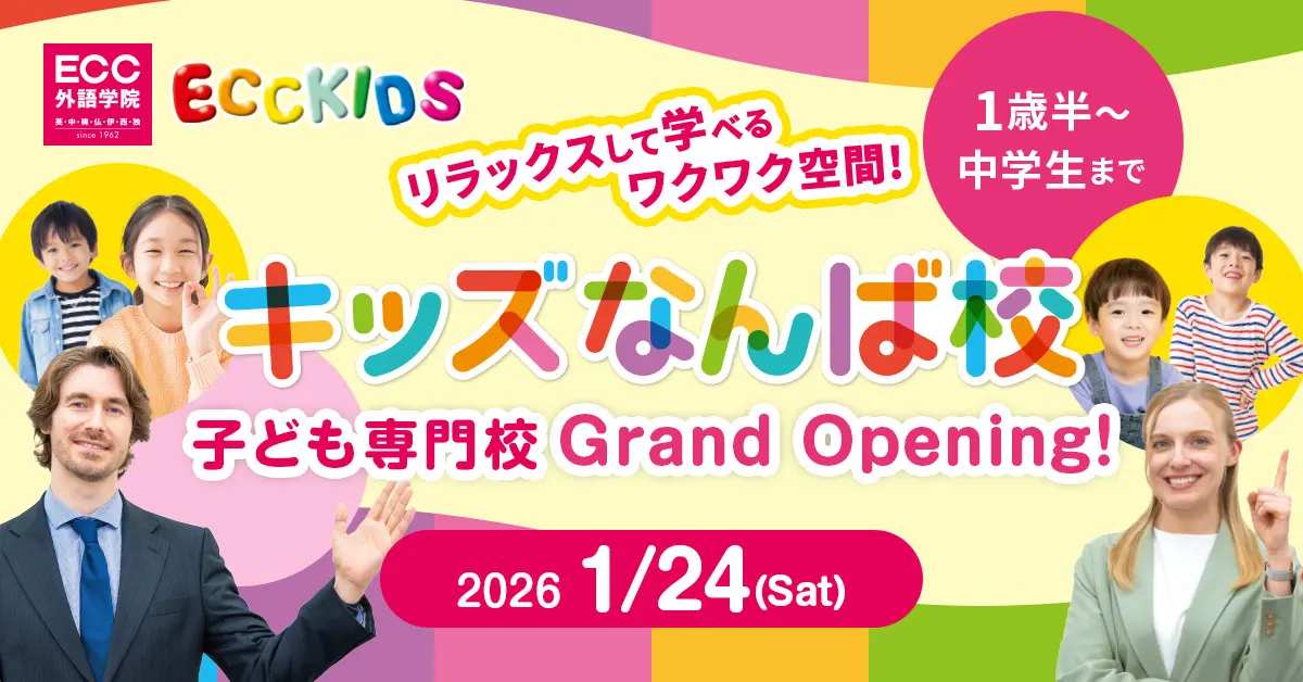 ECCが運営するECC外語学院は「ECCキッズなんば校」を24日に新規開校する。