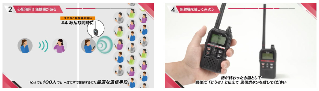 1月16日から無償貸与の受付けを開始しており、3月には私立桃山学院中学校(大阪市)で生徒たちを対象に、同教材を活用したデモ授業を実施。このデモ授業を皮切りに、全国の中学校に、スマホとの違いやトランシーバーの使い方などをまとめた動画(画面キャプチャ)とロープレ訓練をセットにして無償貸与していく。