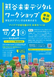 ワークショップは、1月17日に「まちづくり」、2月7日に「仕事・暮らし」、3月7日に最終成果発表会をテーマに実施。会場は熊谷市立商工会館とオンラインの併用形式で行われる。全3回に参加した学生には、熊谷市から「タウンマネジメント活動証明書」が発行される。