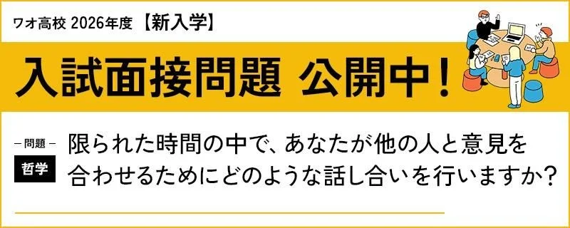 通信制高校「ワオ高校」(岡山市)は、1月21日から、2026年度新入学入試の2月出願の受付を開始する。受付は2月20日まで。