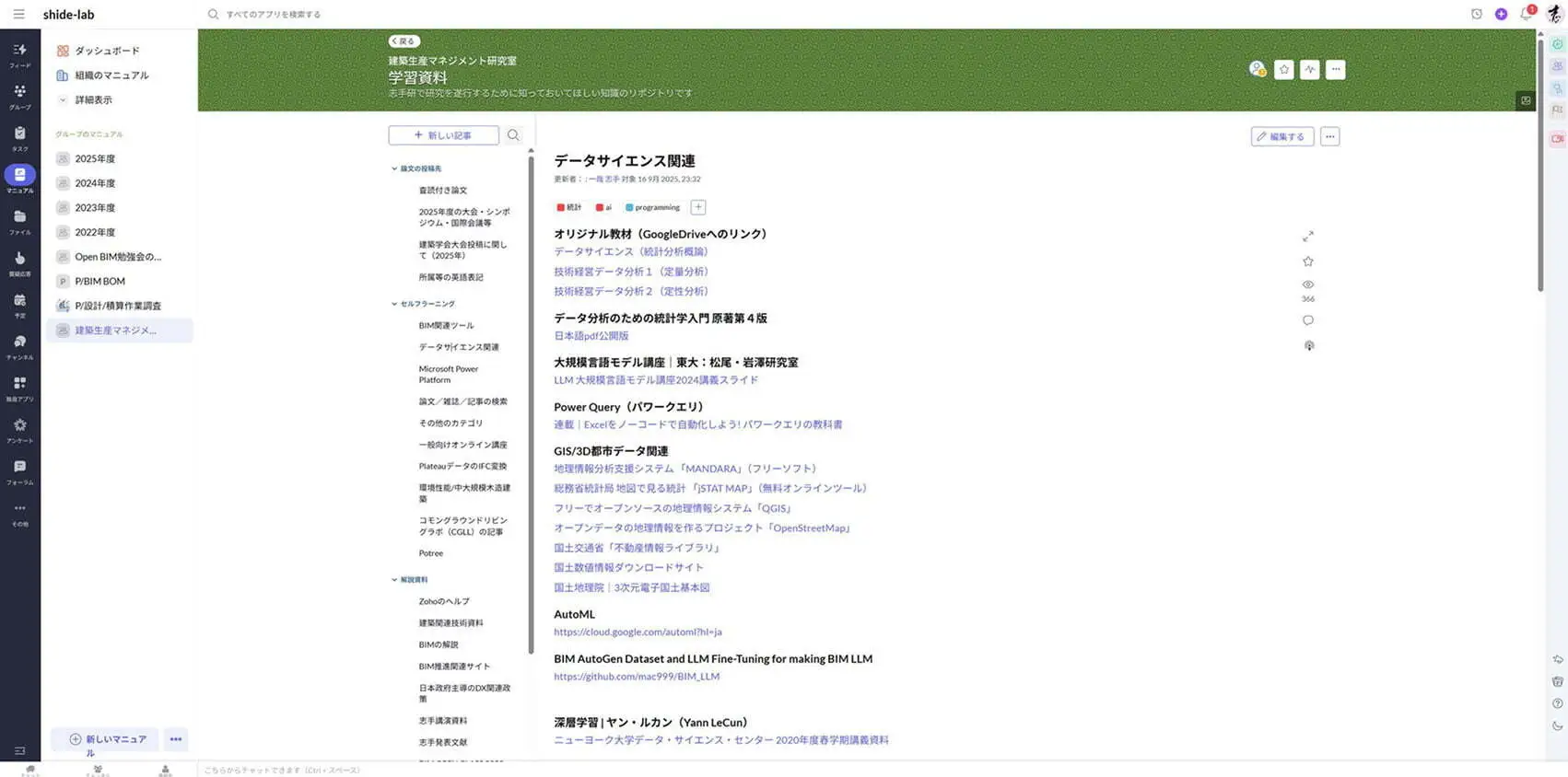 具体的には、Zoho Connectの導入で、日常的な連絡から行事予定、運営ルール、過年度の資料に至るまで、研究室内で発生・蓄積される情報を1つの環境で管理。年度ごとにメンバーが入れ替わる研究室という特性の中で、「情報が流れて終わらず、運営ルールや行事ノウハウが継続的に更新・継承される仕組み」を構築した。