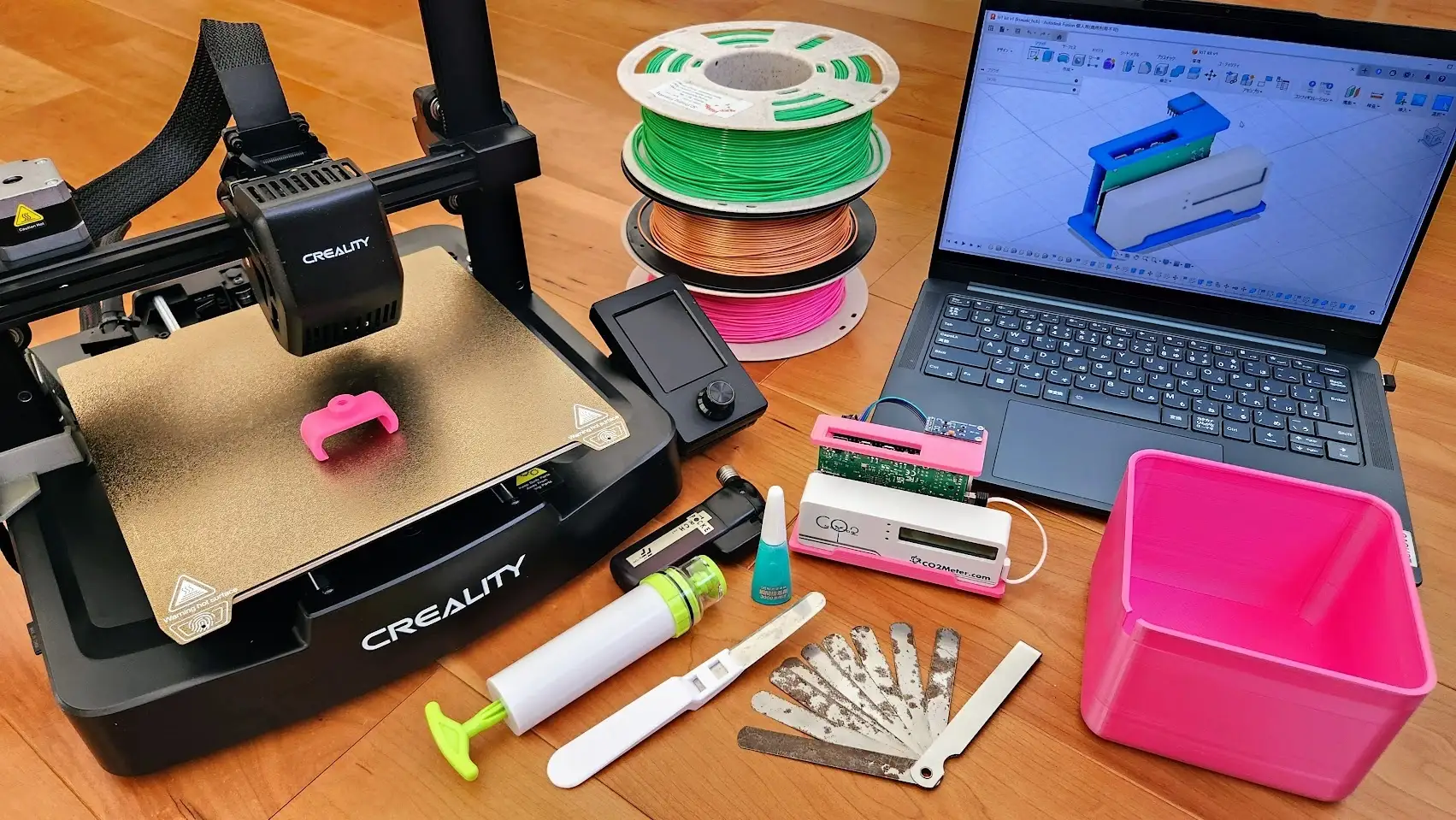 講座では、ThingiverseやPrintables、MakerWorldなどの公開3Dデータの探し方から、スライサーCuraを使った出力手順、Fusionでのシンプルな3Dデータ作成とプリントまでを一通り扱う。使用機材例としてCrealityのEnder-3シリーズを挙げ、PLA・TPU・PETG・ABS・ASA・PCといった主要フィラメントの特徴も解説する。