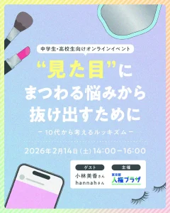 東京都人権啓発センターは、10代の中高生を対象に「ルッキズム(外見至上主義)」をテーマとしたイベントを2月14日にオンラインで開催する。