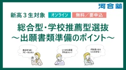 河合塾は、新高校3年生とその保護者向けオンラインセミナー「総合型・学校推薦型選抜~出願書類準備のポイント~」を2月23日に無料開催する。