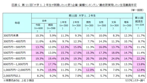 リスクモンスターは21日、第11回「大学1、2年生が就職したいと思う企業・業種ランキング」の調査結果を発表した。