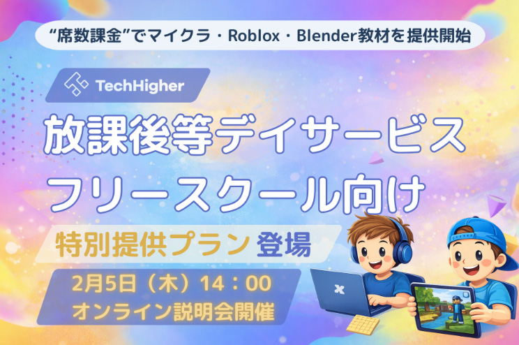 エクシードは、放課後等デイサービスおよびフリースクール向けに、「マイクラ・Roblox・Blender教材 特別提供プラン」を2月から提供開始する。