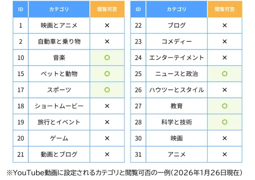 今回のアップデートでは、YouTubeのカテゴリ単位で視聴可否を設定できるようになった。これまで提供していたチャンネルIDや動画URL単位での設定に加え、カテゴリ単位での制御と組み合わせることで、より柔軟な設定が可能となる。また、視聴履歴もカテゴリ単位で見ることができるので、児童生徒の興味や関心に沿った指導に役立つ。