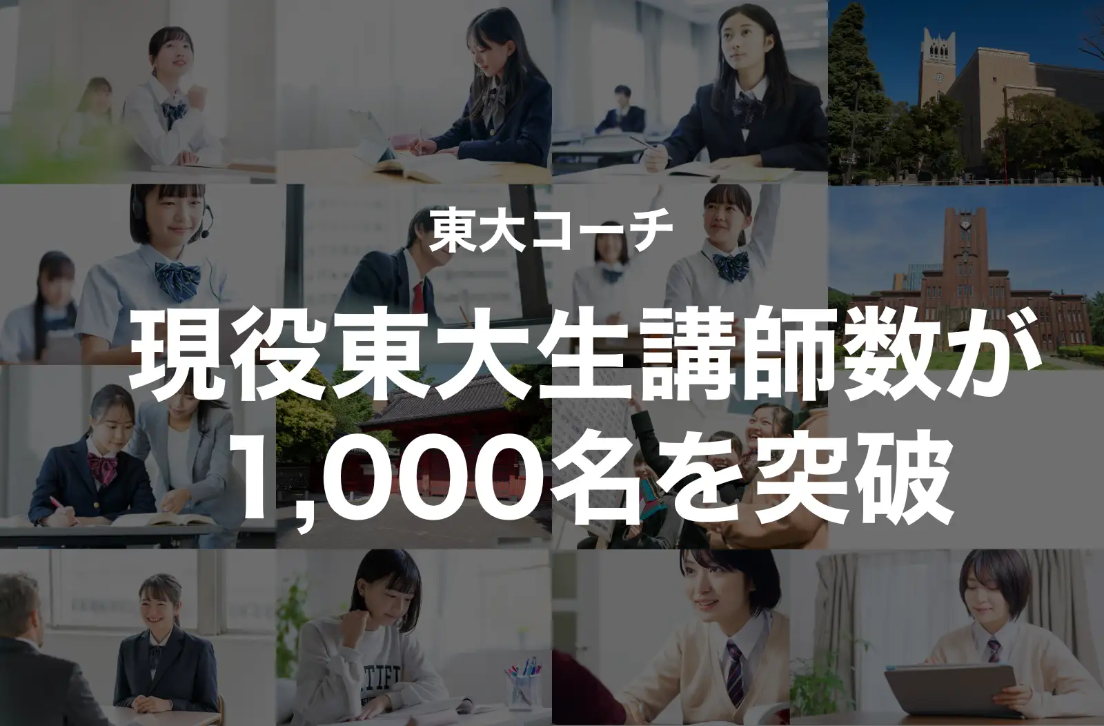 オンライン家庭教師サービス「東大コーチ」、現役東大生講師数が1000名を突破