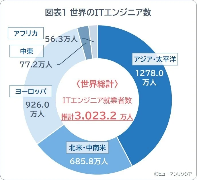 3. 世界のITエンジニア数が3000万人突破、インドが米国を引き離し首位独走、日本は4位維持も「供給力」に課題 =ヒューマン調べ=