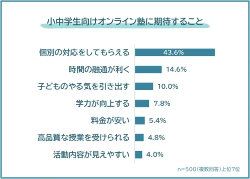 小中学生向けオンライン塾に期待することは「個別対応」43.6%=アタム調べ=