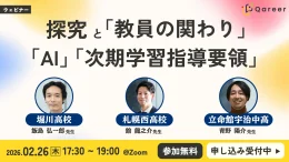 当日は、京都市立堀川高校、北海道札幌西高校、立命館宇治中学・高校の3校の現役教員が講師として登壇。探究学習の現在地とこれからをテーマに①生徒の探究を深めるために、教師はどうあるべきか、② 探究において、AIをどう位置づけ、生徒の学びを深めるか、③最新の議論を踏まえた、次年度の方向性をどうするか―について解説する。