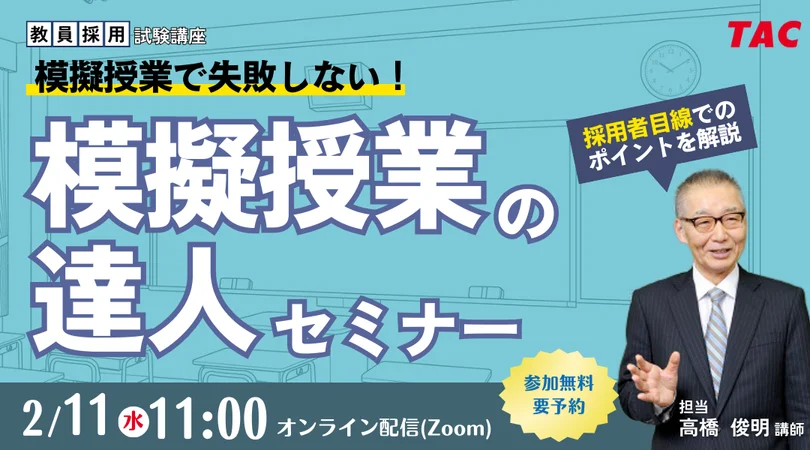 - TAC、教員採用試験オンラインセミナー「模擬授業の達人セミナー」11日開催(2026年2月4日)