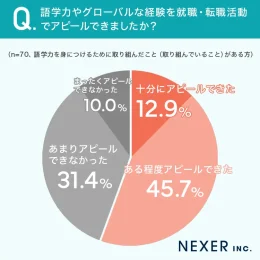 NEXERは3日、キャリタスダイレクトと共同で、社会人経験がある全国の男女751名を対象に実施した「語学力・グローバルスキルのキャリア活用」のアンケート結果を公開した。