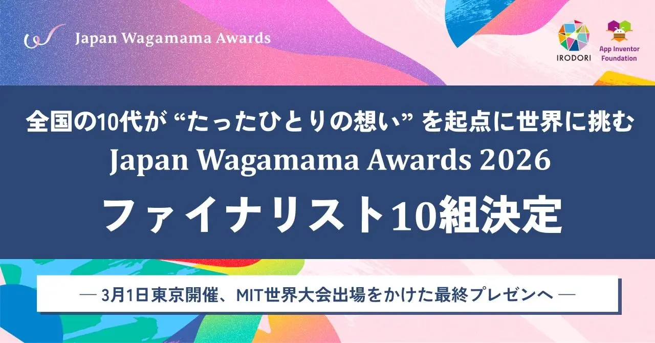 同イベントは、10代が身近なたったひとりの「こうなったらいいな」を起点に、テクノロジーを活用して地域や社会を変えていく実践型プロジェクト。MITの教育プラットフォームを展開するApp Inventor Foundationとの公式連携により実施され、選出された10組のファイナリストは、3月1日に東京で開催されるファイナルプレゼンテーションに登壇する。グランプリ受賞者は日本代表として、7月に米国MITで開催される世界大会への出場権を手にする。
