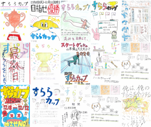 香川さんは「ただ『すららカップをやろう』というだけでは、やる気に火がつかない人もいます。いかに皆のやる気に火をつけられるのかを考えました。」と振り返った。その答えとして皆の好きなアニメのキャラクターを描いたポスターを制作。仲間への強い応援の想いを込めた。