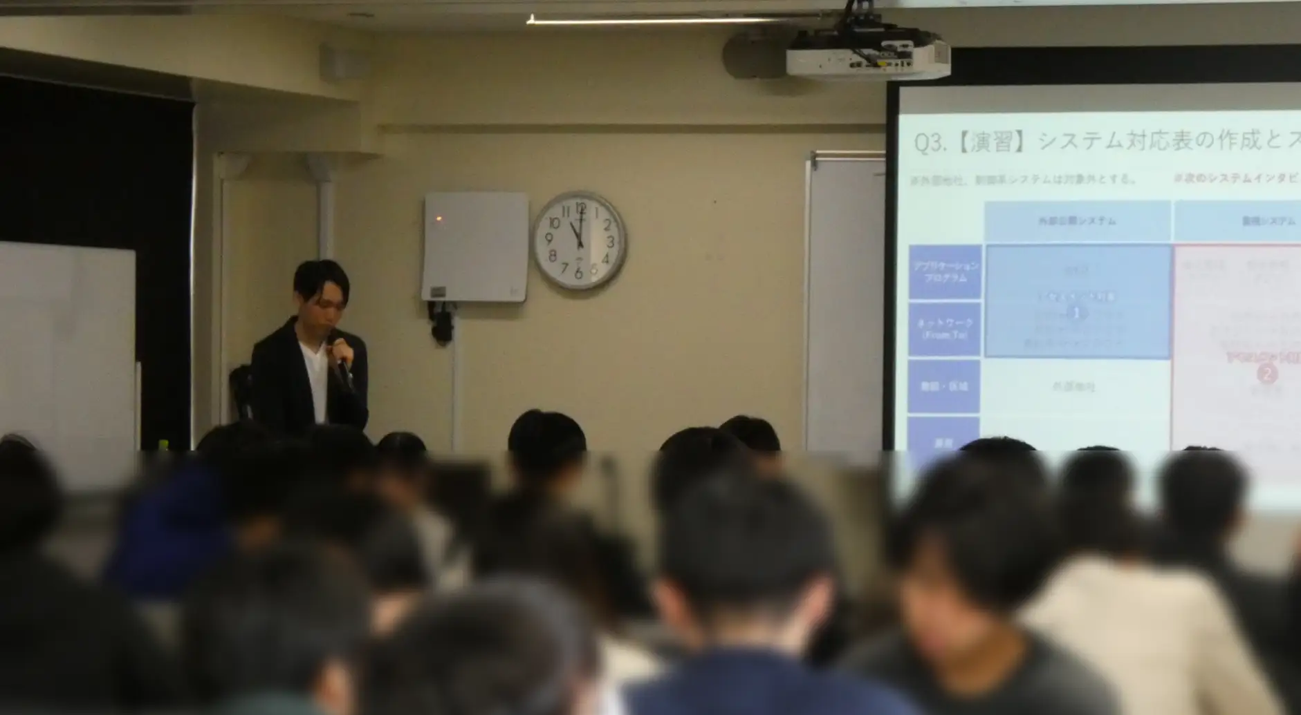 同講義では、デジタル社会に不可欠なサイバーセキュリティの重要性に着目し、セキュリティ対策を考える上で必要になるリスクアセスメント手法について、基本用語の学習から事例を使ったグループワークによる実践演習までを実施。