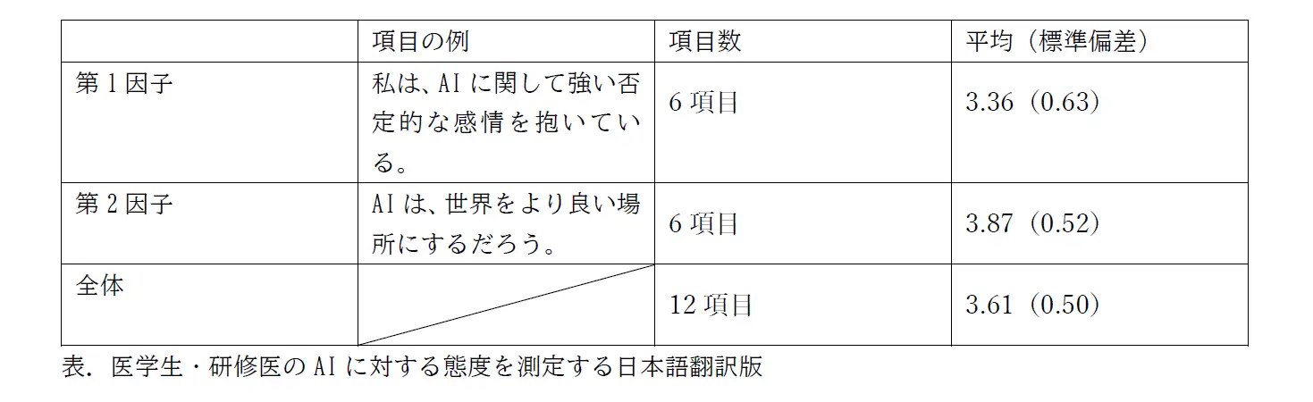 3. 順天堂、医学生・研修医のAIに対する態度を測定する日本語翻訳版尺度の開発・検証