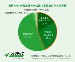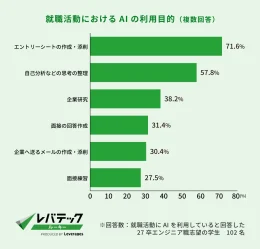 レバテックは12日、2027年3月卒業予定のエンジニア職志望の大学生・大学院生に実施した、就職活動における生成AI利用の実態調査の結果を公表した。