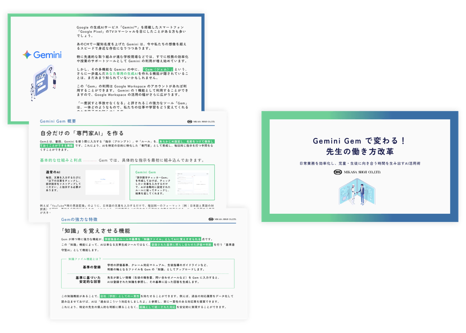 3. ミカサ商事、生成AI解説資料「Gemini Gem で変わる!先生の働き方改革」公開