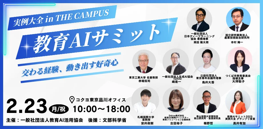 教育AI活用協会は、文部科学省後援のもと23日に開催する「教育AIサミット2026 in THE CAMPUS」の登壇者を決定した。