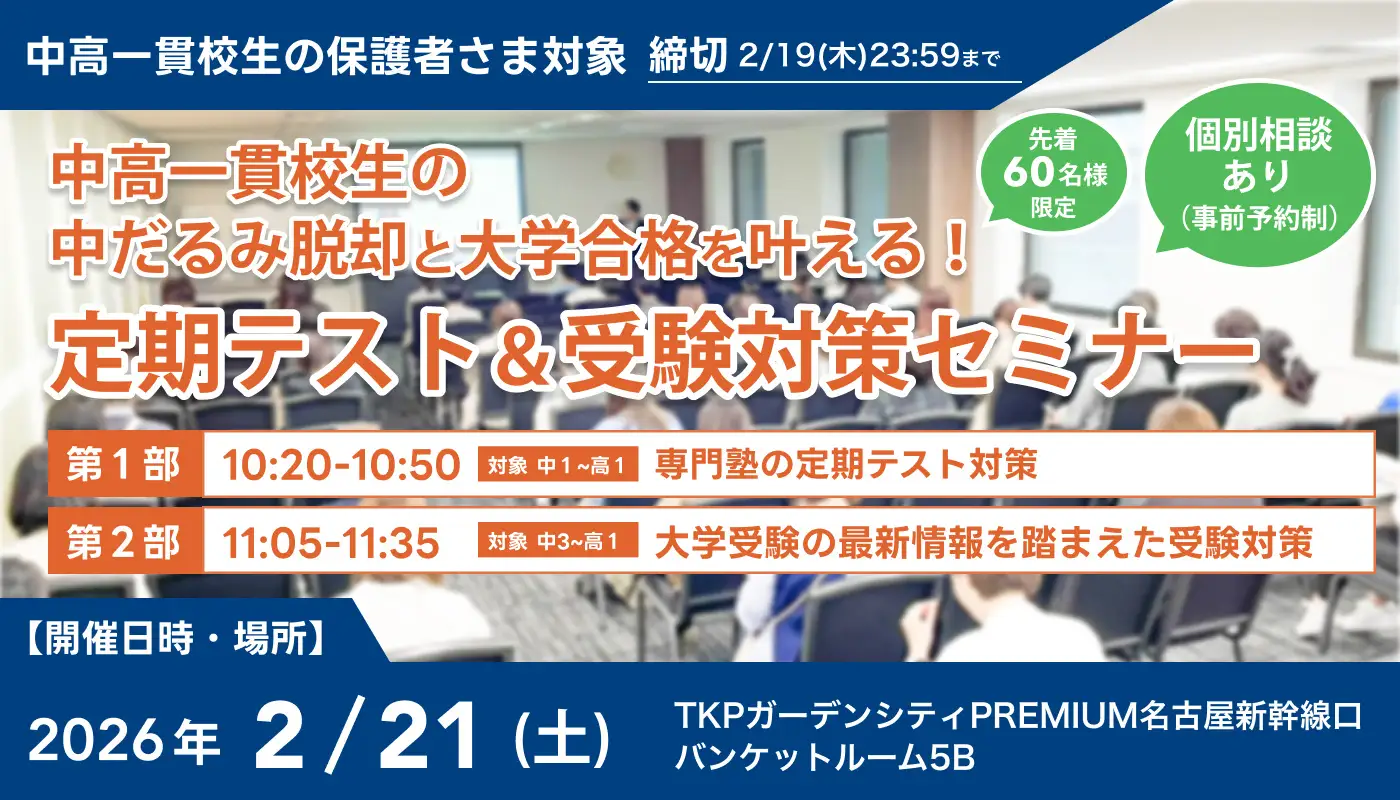 - メイツ、中高一貫校生の「中だるみ脱却」と「大学合格」を叶える定期テスト&受験対策セミナー 21日開催(2026年2月18日)