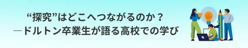 探究学習に関するイベントは数多くあるが、同セミナーのポイントは、探究学習がどのように進路やキャリアにつながったかを卒業生自身が語る点。あわせて、ドルトンX学園高等学校説明会も実施する。
