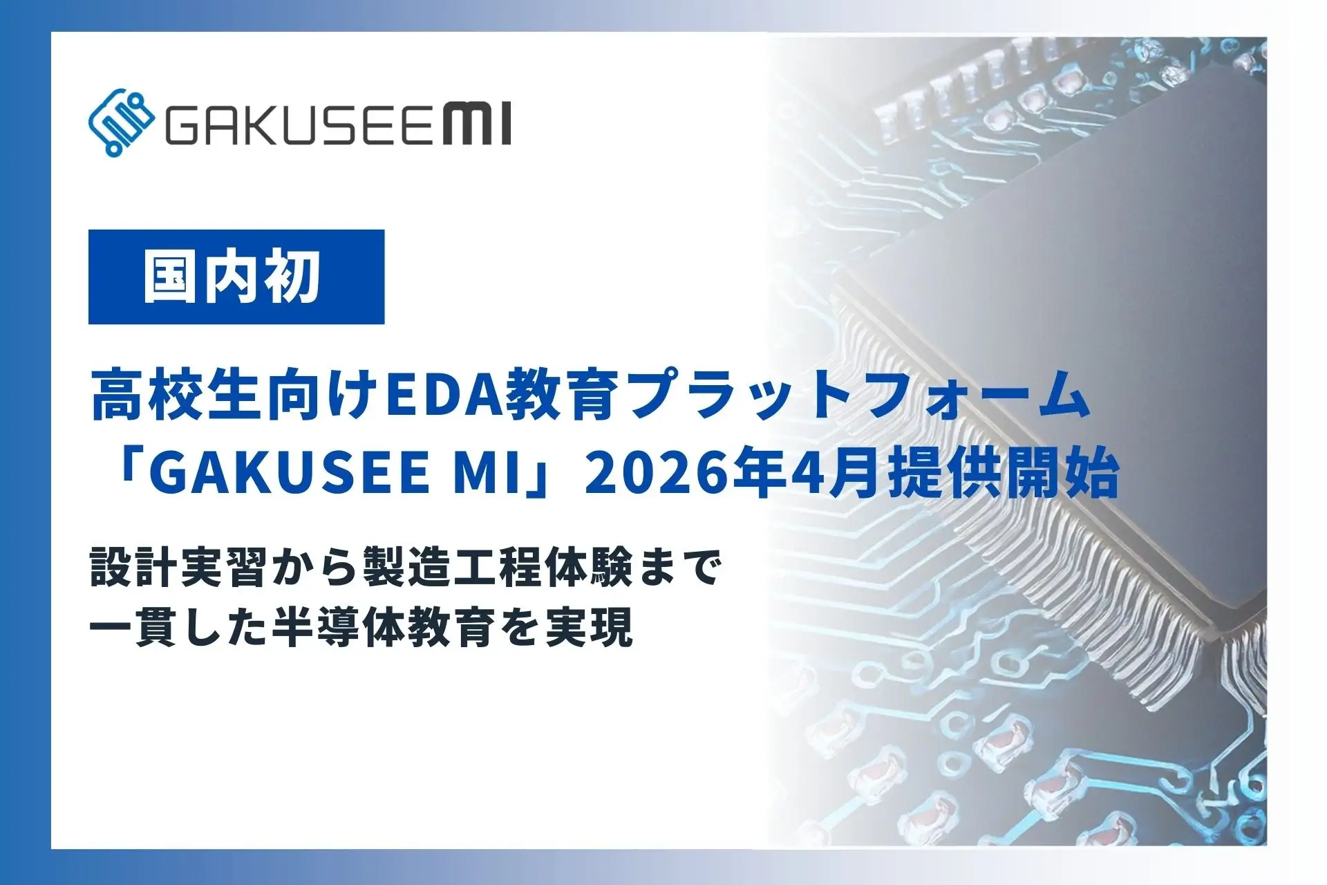 木村情報技術は、高校生を対象とした半導体EDA(Electronic Design Automation)教育プラットフォーム「GAKUSEE MI(ガクシー・ミー)」を4月にリリースする。