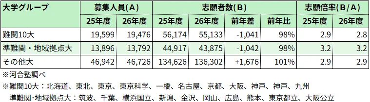 - 河合塾、国公立大学2次試験志願状況分析 共通テスト難化で難関大中心に安全志向強まる(2026年2月24日)