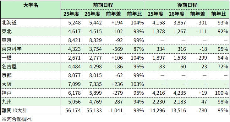 河合塾、国公立大学2次試験志願状況分析 共通テスト難化で難関大中心に安全志向強まる