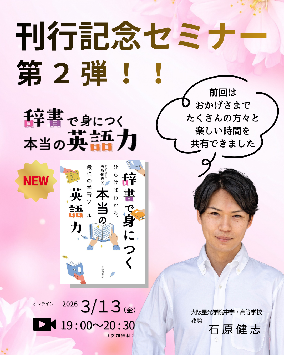 大修館書店は、最新刊『辞書で身につく本当の英語力-ひらけばわかる、最強の学習ツール』の著者である石原健志氏を講師に迎え、辞書の魅力・使い方・授業での活用などを発見・共有できるセミナーの第2弾を3月13日にオンラインで開催する。