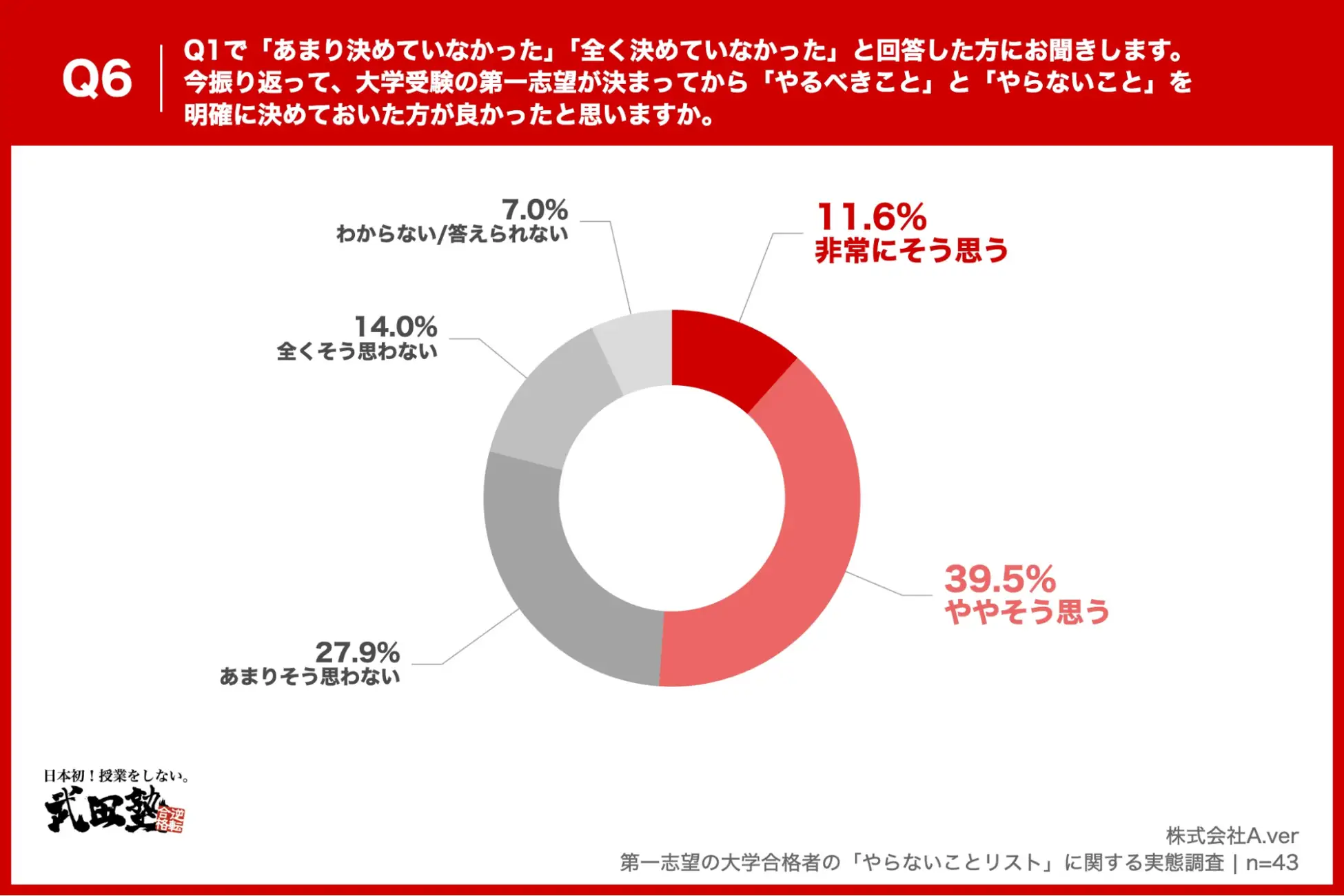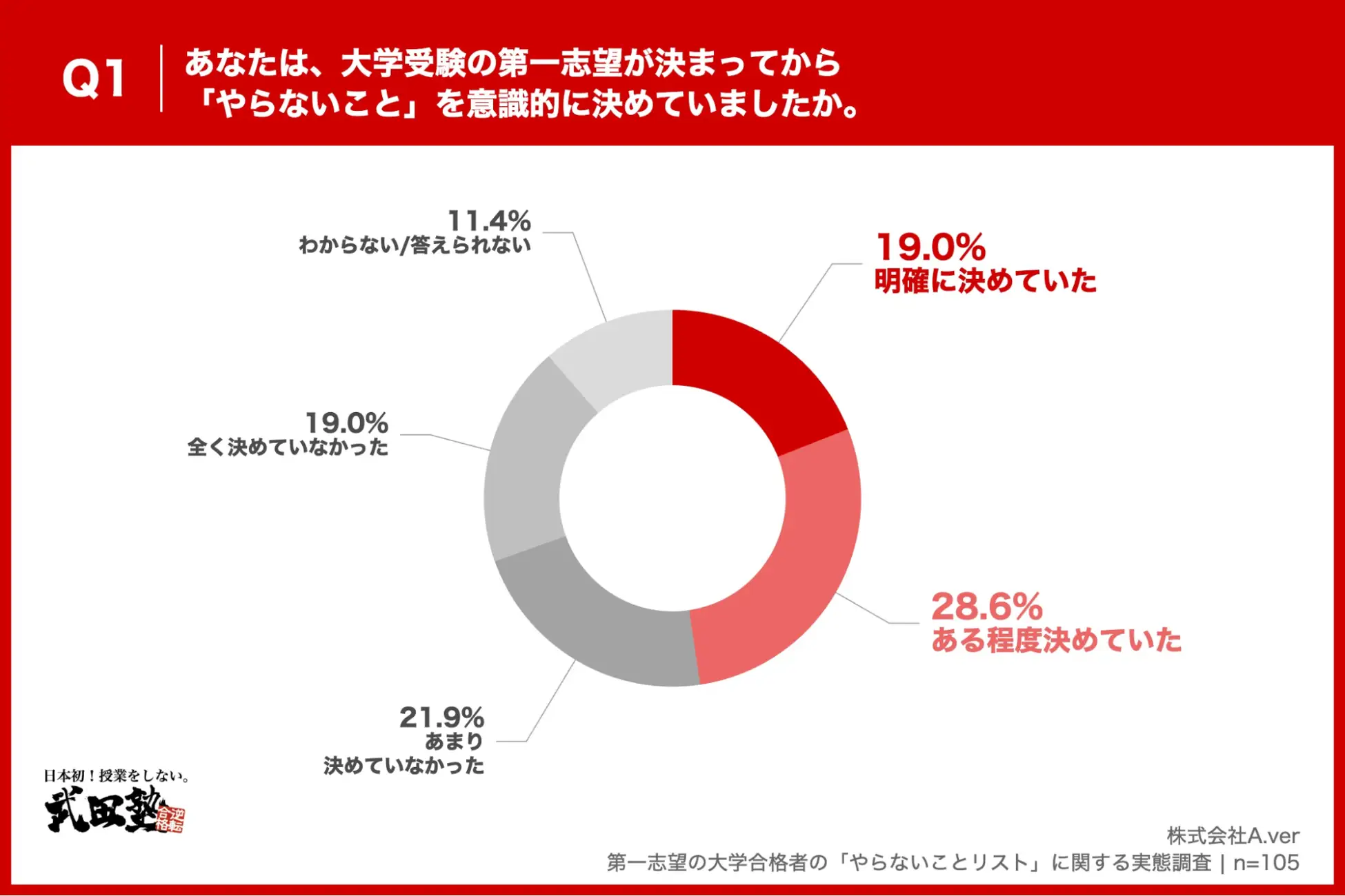学習塾「武田塾」を展開するA.verは2月27日、第一志望大学合格者の「やらないことリスト」に関する実態調査の結果を公表した。