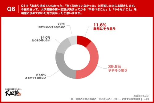 やらないことを決めた受験生の半数が「勉強の効率が上がった」と効果を実感、4割近くが「勉強時間が増えた」と回答した。また、やらないことを決めなかった受験生の約半数が「決めておけばよかった」と回答した。