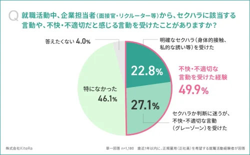 就活セクハラ実態調査 約5割が不快・不適切言動を受けた経験 =KiteRa調べ=